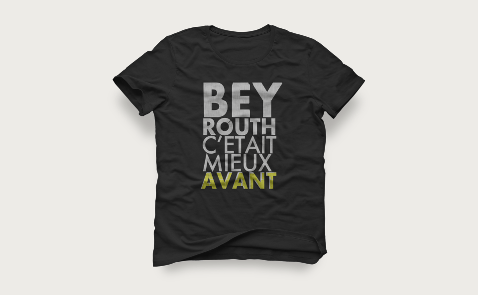 Dans les années 2010 mon fils est devenu nostalgique d’une autre avant-guerre, celle des années 1960, le Beyrouth qu’il enfile avec ce t-shirt n’est pas le mien, ça n’est pas le Beyrouth militant des années 1970. Et maintenant je vois encore une autre génération qui rêve des années 1990 que moi j’ai détestées. Et d’autres passent, des étrangers revenus à Beyrouth après quelques années et qui rêvent de 2000 et de Beyrouth capitale de la culture arabe, ou même déjà de 2012 et de l’époque du Skybar. Même des gens de droite sont venus, récemment, des miliciens contrariés d’une guerre qu’ils n’ont pas pu faire, ou des fous nostalgiques du mandat que même leur parents n’ont pas vécu.