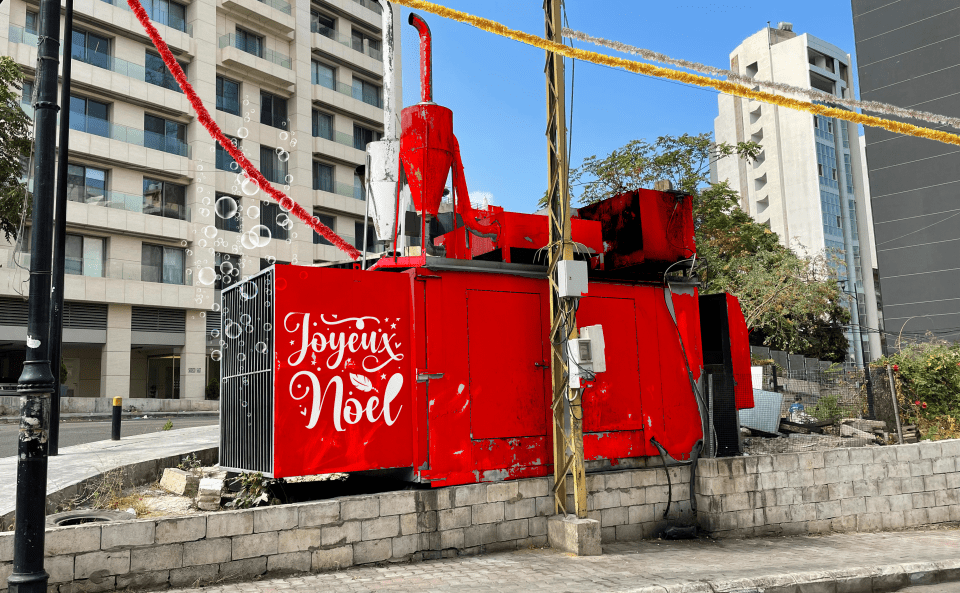 Pour célébrer Noël et l’enfance, l’UNICEF a en effet mis les petits paquets dans les grands, et ce dans trois quartiers de la capitale libanaise : repeindre les générateurs du quartier aux couleurs de Noël, entrelacer des guirlandes et des boules le long des cables électriques qui pullulent dans le quartier, mais surtout proposer une innovation technique et esthétique, « à partir du 15 décembre, grâce à un additif dans l’essence, la fumée des générateurs du quartier sera soit rendue blanche soit travaillée de manière à produire des bulles de savon. Regardez« .