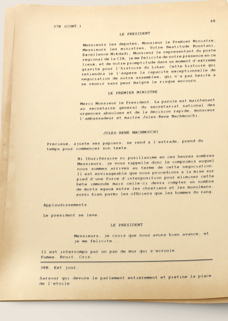 Chacun a reconnu là, évidemment, non pas un sous-entendu politique mais un simple remake libanais du célèbre film de Georges Romero, Zombie, sorti en 1978. Survivor movie à la sauce libanaise, le film à la carrière stoppé net marque un deuxième couperet dans la carrière de Boris Itani, dont Camélia Chalhoub comme Maurice, désormais passionné lui aussi par l’histoire, espèrent désormais retrouver la trace en remontant le fil de ces documents. C’était une journée comme les autres au départ, d’un chineur d’antiquités et de vieux papiers – peut-être désormais une longue quête qui commence : « nous ne savons toujours pas d’où tout ça provient, si ce sont les archives d’Itani lui-même, ce qui pourrait vouloir dire qu’il a quitté le pays ou qu’il est décédé, mais imaginez si jamais il reste une des pellicules quelque part, moi je n’en dors plus, je veux savoir ». Camélia en a les yeux brûlants.