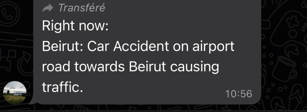 Non, c’est un effet des alertes sécurité elles-mêmes, c’est une boucle. Elles peuvent exister sans vraiment désigner l’état réel de la sécurité, elles ont leur autonomie. Ca ne veut pas dire qu’il ne se passe rien au Liban, il y a des vrais trucs sécuritaires parfois. Mais ca veut dire que quasiment tout ce qui se passe est potentiellement réécrit, ou que la réécriture n’en est plus une et s’est détachée de la réalité. C’est le cas pour quasiment toutes ces alertes. Tout le monde s’est habitué à ce qu’il n’y ait pas d’échelle entre le fait divers et le gros titre, il n’y a plus de hiérarchie des nouvelles, alors elles circulent du détail à l’événement majeur, de la fiction à la réalité en toute liberté.