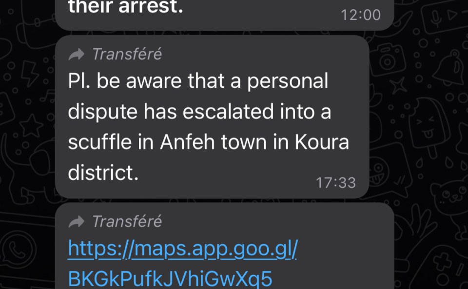 Jusqu’au jour où le type de la sécu l’a su, m’a contacté et m’a proposé de venir. La première fois je pensais trouver un énorme PC sécurité avec des satellites et des écrans géants, une équipe monstrueuse, et en fait on m’a montré un bureau lambda, un portable standard, où défilaient 30 ou 40 groupes whatsapp sécurité, avec un ordinateur connecté à tous les groupes facebook et les twitters locaux imaginables au Liban, le groupe régional du Akkar, le groupe municipal de la ville reculée du sud, le groupe des habitants de la rue X, le groupe des expats nostalgiques du village reculé du nord où plus personne n’habite en réalité, il y a tous les formats presque.